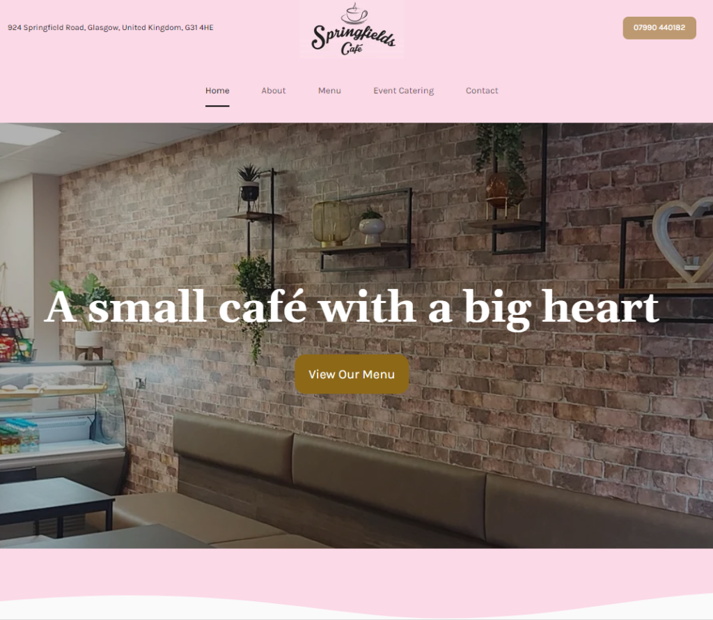 Springfields Café was a warm, local spot aiming to be the heart of the community in Glasgow. They needed a simple, welcoming website to help locals find their menu, location, and catering services.